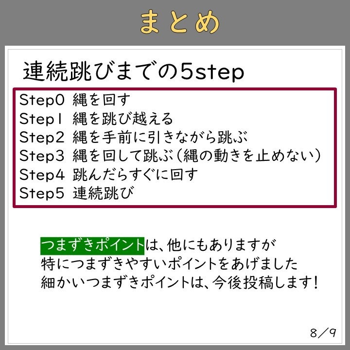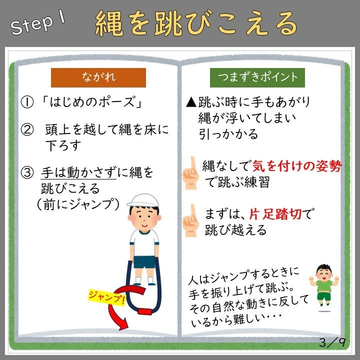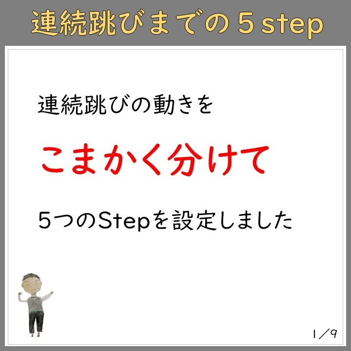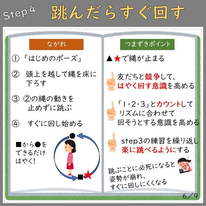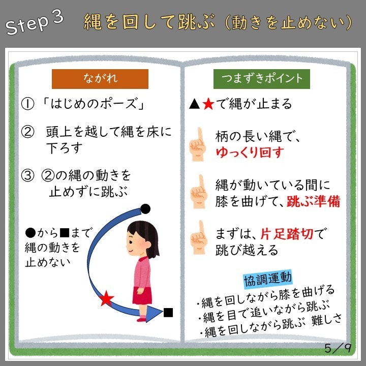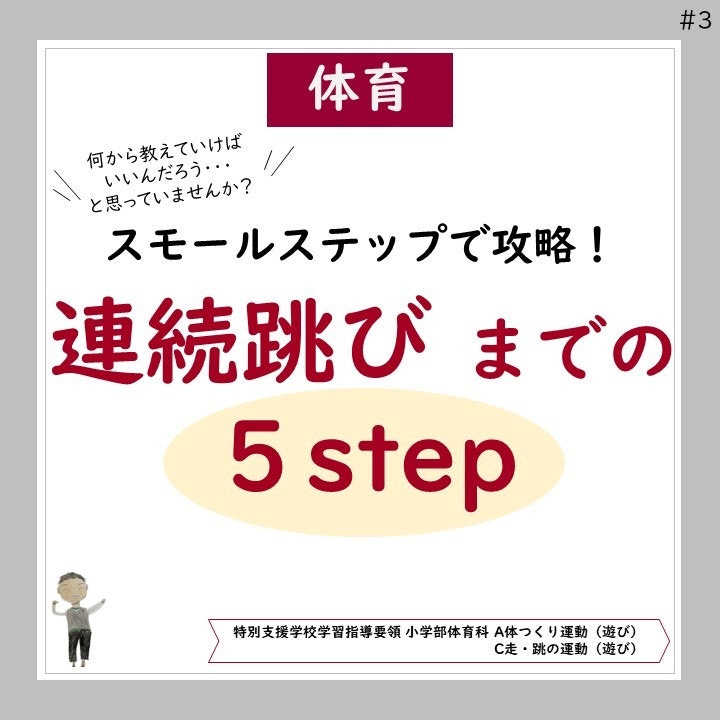 おっくん先生2025/12/15 07:00縄跳び「指導5step」特別支援教育はスモールステップが大事!ねらいを焦点化して、「できた!」を引き出す。ぜひ、ご覧ください。 スライド1.JPG 76.77 KBスライド2.JPG 69.32 KBスライド3.JPG 101.09 KBスライド4.JPG 124.97 KBスライド5.JPG 140.8 KBスライド6.JPG 127.37 KBスライド7.JPG 133.55 KBスライド8.JPG 119.95 KBスライド9.JPG 108.54 KBスライド10.JPG 78.96 KB このブログはメンバー投稿記事ですメンバー登録すると、限定記事の閲覧やメンバー同士の交流、限定イベントへの参加などができます。もっと詳しくメンバーの方はこちらからログインShare縄跳び「おすすめ練習方法13選」バスケ「手足バランバラン」
