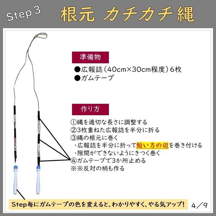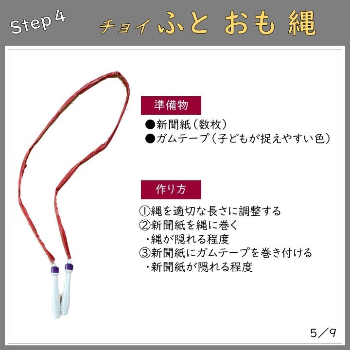 おっくん先生2025/12/12 22:08跳び縄の作り方作り方を紹介します。私のこだわりは、以下に安価な素材で教材を作るか!新聞紙、段ボール、ペットボトル、タオル、ガムテープの芯などは教材づくりの見方です。すぐに作れるのでぜひ! スライド1.JPG 80.98 KBスライド2.JPG 55.95 KBスライド3.JPG 110 KBスライド4.JPG 119.08 KBスライド5.JPG 93.95 KBスライド6.JPG 76.21 KBスライド7.JPG 87.57 KBスライド8.JPG 69.8 KBスライド9.JPG 57.48 KB このブログはメンバー投稿記事ですメンバー登録すると、限定記事の閲覧やメンバー同士の交流、限定イベントへの参加などができます。もっと詳しくメンバーの方はこちらからログインShareバスケ「パックンゴール」縄跳び「跳び縄5選」